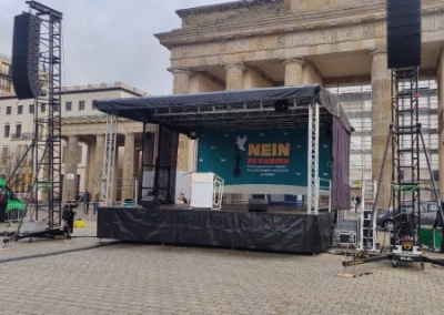 На мероприятие в центре германской столицы собралось несколько тысяч человек, на плакатах, помимо прочего, лозунги в поддержку России и Китая. Это первая