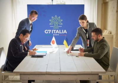 Президент Украины Владимир Зеленский и премьер-министр Японии Фумио Кишида в Италии подписали двустороннее Соглашение о поддержке Украины и сотрудничестве