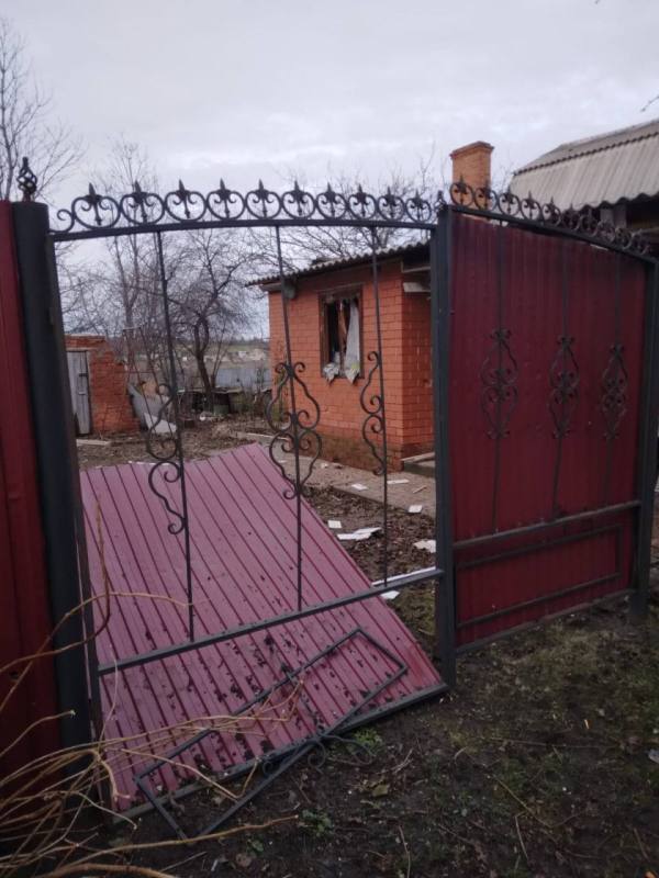 Также есть повреждения в 2 частных домовладениях в селе — осколками снаряда выбиты окна и повреждена крыша, и пострадал один автомобиль.