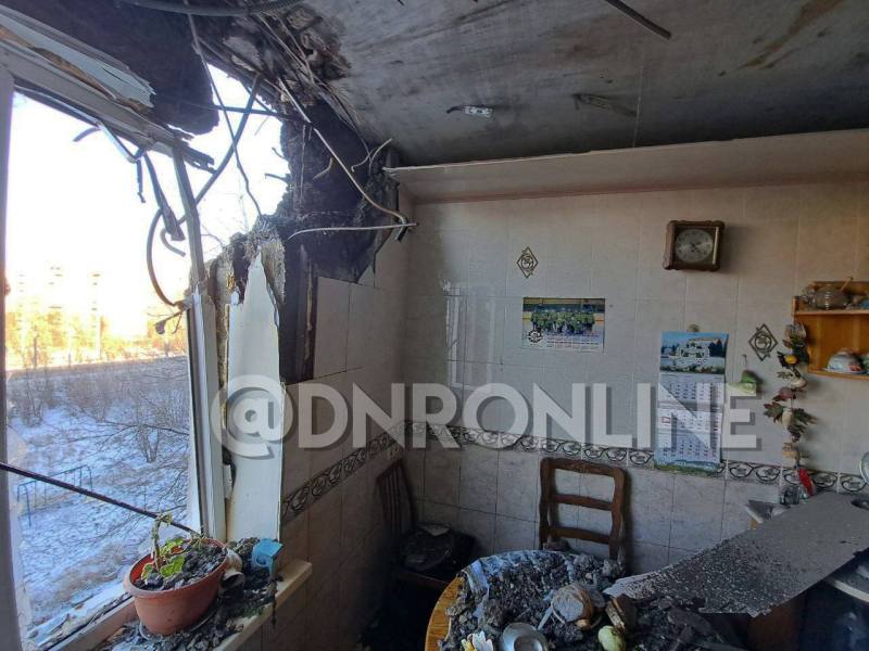 Прямое попадание снарядов было зафиксировано в крышу девятиэтажного жилого дома в микрорайоне Тихий.