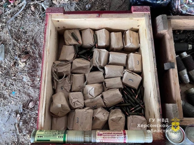 На освобожденных территориях продолжается зачистка территорий от оружейных схронов, которых здесь сосредоточено немалое количество. Так, в селе Михайловка Скадовского района Херсонской области в одном из заброшенных зданий силовики обнаружили крупный арсенал с боеприпасами – изъято свыше двух тысяч патронов и более 20 гранатометов, о чем сообщили в ГУ МВД региона. В тайнике, в том числе, находились 23 выстрела для подствольного гранатомета, две дымовых гранаты, два реактивных сигнальных патрона, 913 патронов калибра 5,45 мм и 1 597 патронов калибра 7,62 мм.
