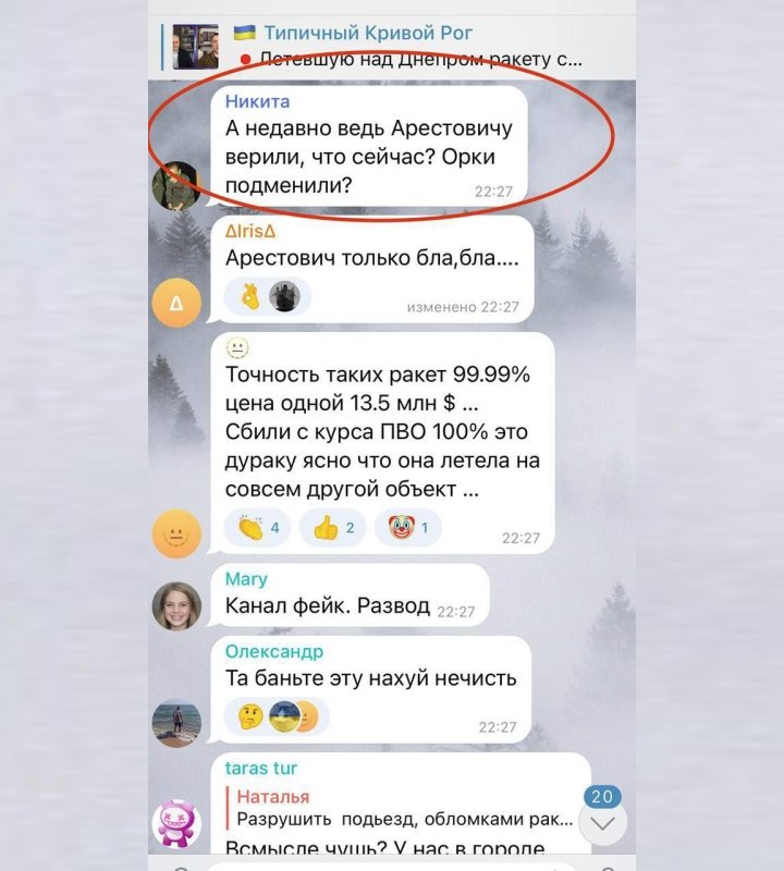 «Зачем нужна такая правда? Закройте уже рот этому Арестовичу! Он дискредитирует наши войска!» — возмущаются «патриоты».