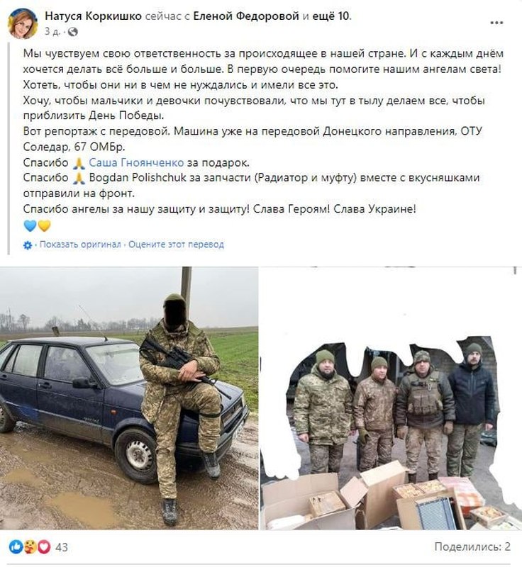 Тем временем тема внедорожников стала средством наживы и для украинских «волонтеров», активно собирающих деньги на необходимый для ВСУ транспорт, но при этом закупающих автохлам начала 90-х. Так, к примеру, некая «волонтер-патриот» Натуся Коркишко еще в ноябре объявила сбор средств на внедорожник для боевиков «Правого сектора». За полтора месяца результат был достигнут – долгожданный автомобиль приобрели. Вот только в отчете о передаче значится не крутой L200, на который, собственно, и собирали денежные средства, а старенький SEAT Ibiza 1991 года производства. Таким образом, все оставшиеся деньги были поделены между боевиками и волонтерами.