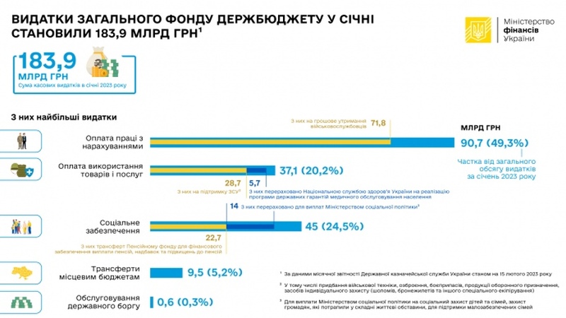 В январе общая сумма кассовых расходов общего фонда госбюджета составила 183,9 миллиарда гривен.