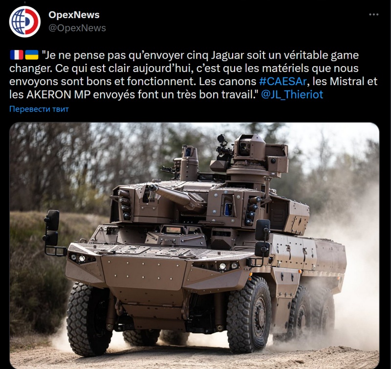 «Сегодня ясно, что присылаемое вами вооружение хорошее и работает. САУ Caesar, ЗРК Mistral и ПТРК AKERON хорошо выполняют свои задачи», — заявил Жан-Луи Тьерио.