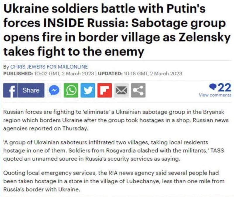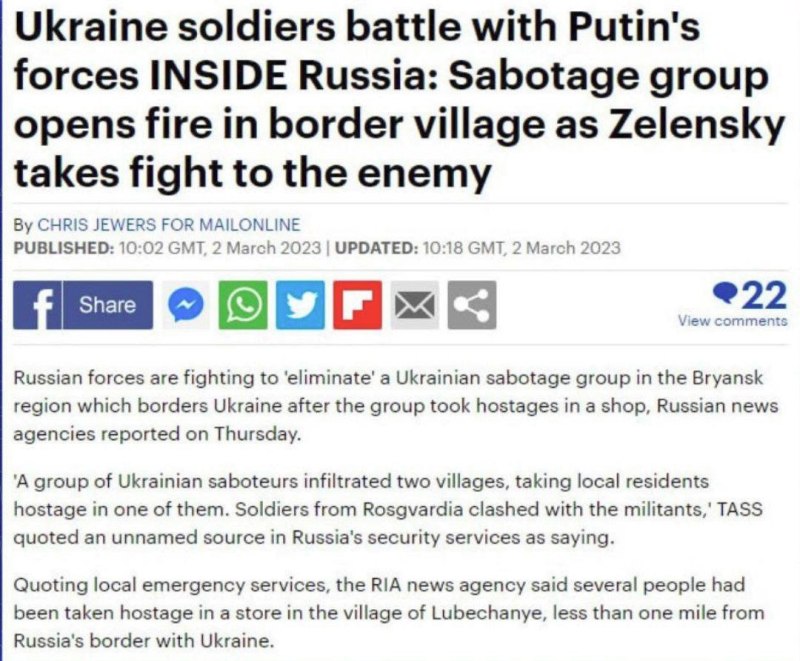 Британский таблоид Express не верит в «правдивость сообщений российских СМИ», но обращает внимание на то, что украинские СМИ издеваются, комментируя ситуацию в Брянской области, к примеру, украинцы назвали происходящее подготовкой к новой волне мобилизации.