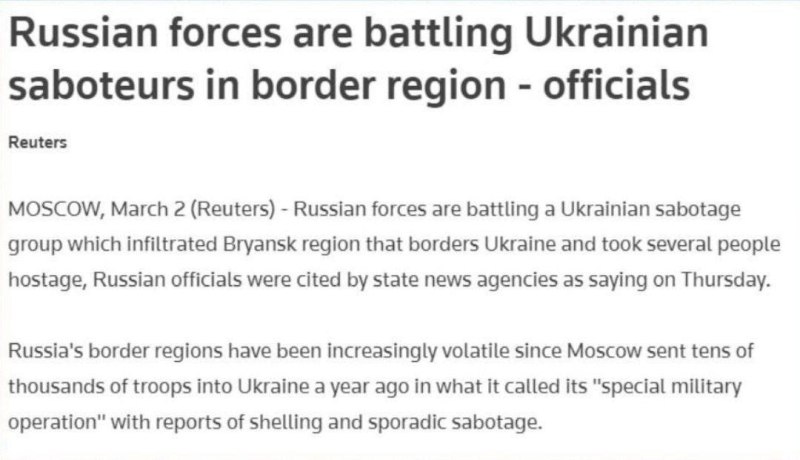 Сама вылазка диверсионно-разведывательной группы ни есть ситуация из ряда вон выходящая. О диверсантах было известно и ранее, в том числе публично. Но впервые ситуация больше обрела политический подтекст, и каков будет наш политический или же военный ответ, действительно интересно будет посмотреть», — пишет ТГ-канал GREY ZONE.