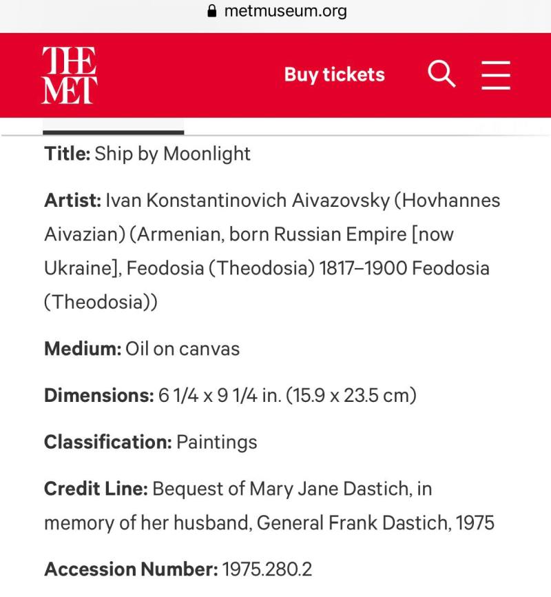 Метрополитен-музей в Нью-Йорке изменил происхождение художника Ивана Айвазовского на армянское, ранее он указывался там как украинец. На сайте музея картины художника подписаны именем Иван Константинович Айвазовский, при этом скобках приведен армянский вариант — Ованес Айвазян.