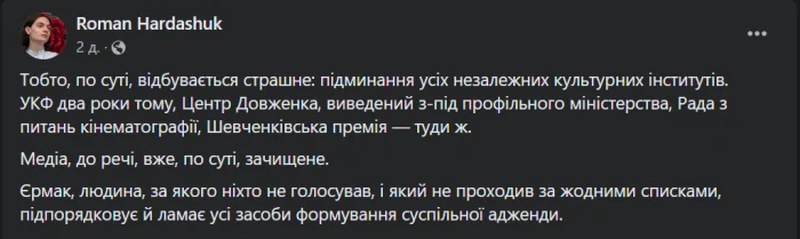 «Многие уважаемые представители художественного сообщества и неравнодушные граждане восприняли этот шаг как политическую спекуляцию, попытки власти назначить "своих" выдвиженцев или приуменьшить вес уже определенных лауреатов», — написал Макаров в Facebook (соцсеть запрещена в РФ).