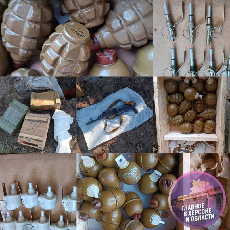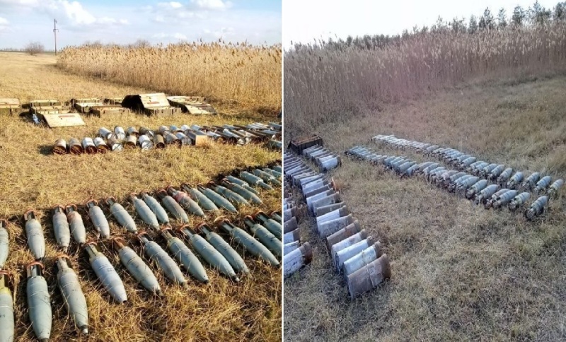 Недалеко от поселка Чаплинка найдено два тайника, из которых изъяли взрыватели, мины, артиллерийские снаряды, танковый снаряд, гранатометные заряды и трассирующие патроны. Мины, гранаты, автоматы и патроны изъяты из тайника, оборудованного на окраине села Хорлы. Возле жилого дома в селе Любимовка изъяты корпуса для гранат, взрыватели, патроны и автомат. На территории агрокомплекса в селе Воскресенка найдены патроны и различного типа боеприпасы, а в селе Новоивановка – 6 гранатометных выстрелов.