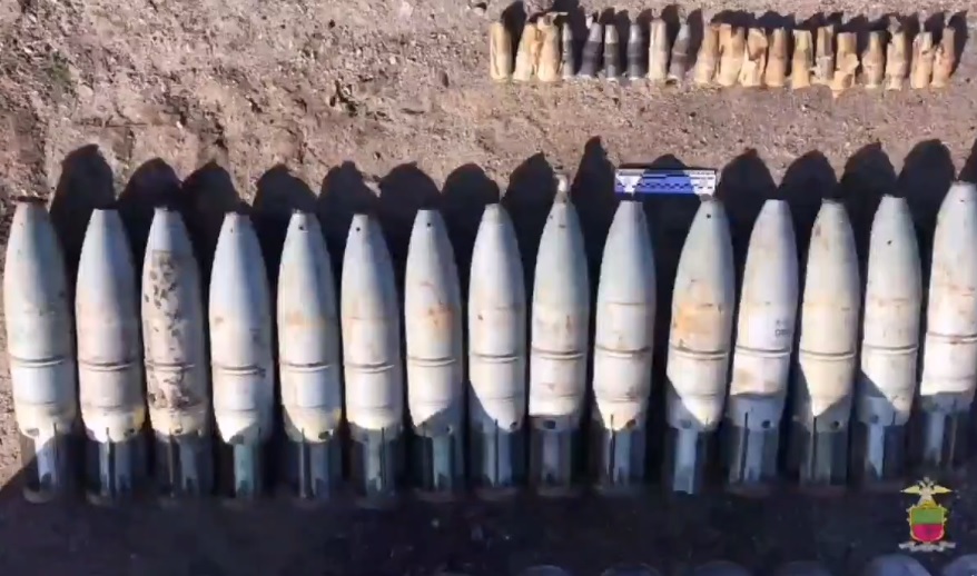 Рядом с упомянутым поселком также обнаружен замаскированный под свалку схрон с танковыми и артиллерийскими снарядами. Тайник находился в яме, а сами боеприпасы были забросаны различными мусорными отходами, в том числе, металлическими, чтобы металлоискатель не смог на них указать. Из тайника изъято 15 танковых осколочно-фугасных снаряда калибра 125 мм, 13 зарядов к ним и 21 артиллерийский взрыватель. Опасные находки извлекли с помощью военнослужащих из инженерного подразделения Минобороны РФ. По данному факту также проводится соответствующая проверка.