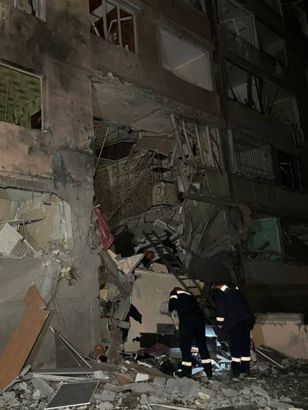 «Это произошло накануне вечером на ул. Куйбышева. Вследствие попадания снаряда в квартиру на втором этаже занялся пожар и обрушилось межэтажное перекрытие. Спасатели убрали разрушенные железобетонные плиты и угрожающие обрушиться конструкции между первым и вторым этажами. Погибшие и пострадавшие под завалами не обнаружены», — говорится в сообщении ведомства.