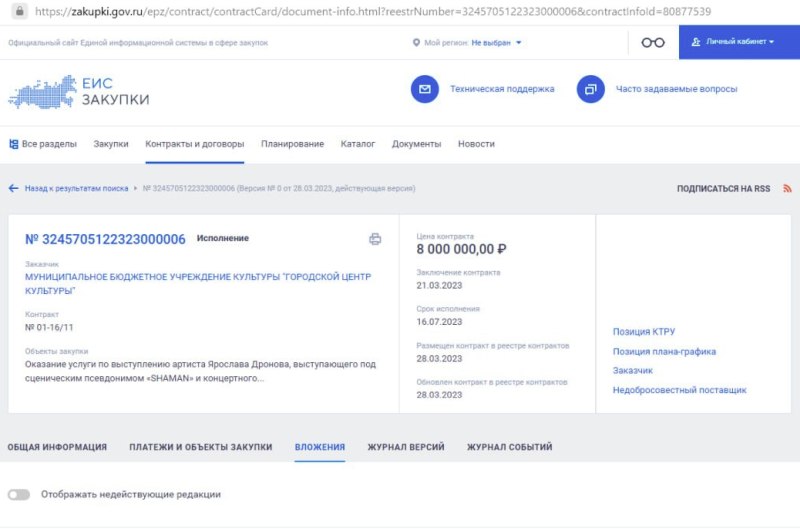 Это не первый госконтракт в активе певца. За такую же сумму артист выступит на Дне Всеволожского района 27 августа. За бюджетные деньги (но за меньшие суммы) он также выступал на праздновании 300-й годовщины со Дня основания города Колпино и Ижорских заводов, в Череповце и ряде других городов.