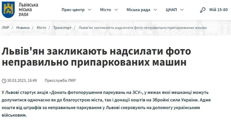 Необычный способ донатов на ВСУ. Жителей Львова призывают доносить на водителей за неправильную парковку