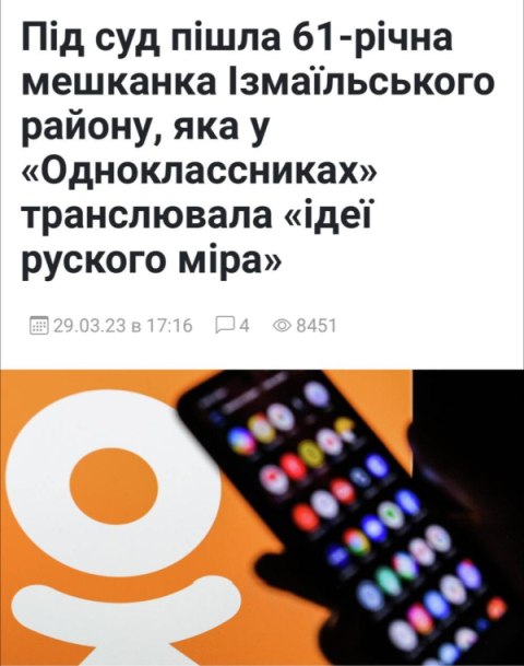 В той же Одесской области осудили 61-летнюю жительницу Измаильского района, которая в «Одноклассниках» транслировала «идеи Русского мира».