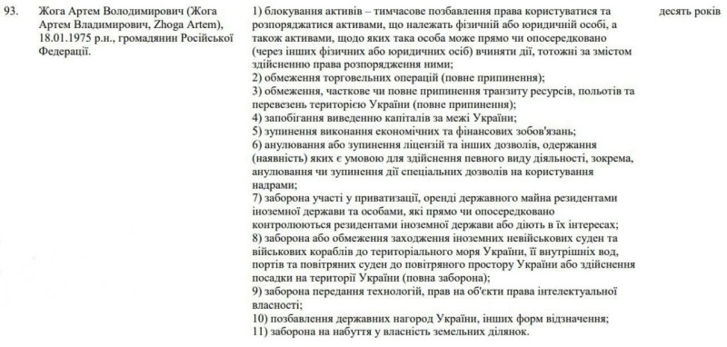 Также стало известно, что президент Зеленский ввел санкции против отца погибшего комбата «Спарты» Артема Жоги. Напомним, Владимир Жога, более известный под позывным «Воха», погиб в начале марта прошлого года во время освобождения Волновахи, прикрывая собой эвакуирующихся мирных жителей.