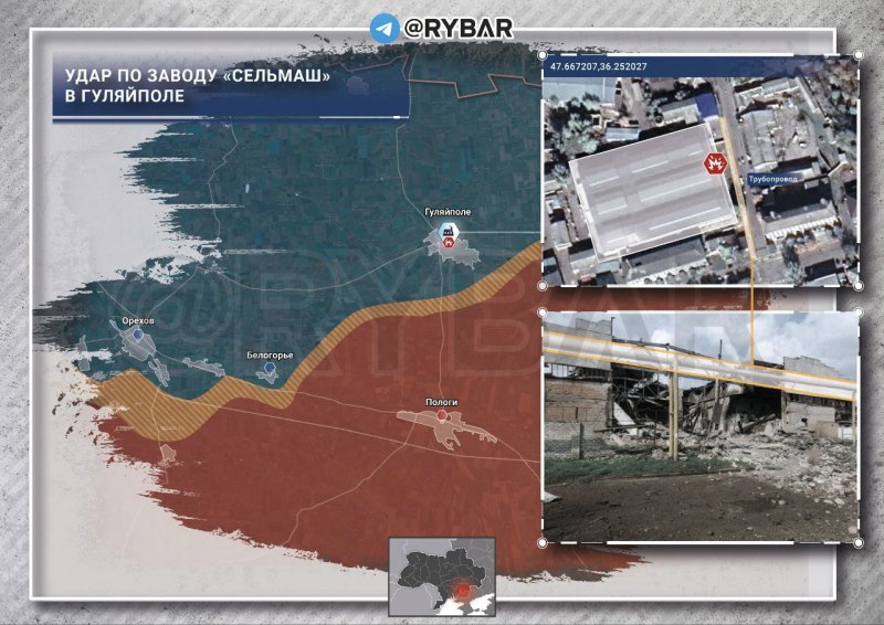 Авторы канала уточнили, что GEOINT-команда издания определила точное местоположение цели: российский удар уничтожил здание предприятия производства сельскохозяйственной техники «ЗапАгроТех» (бывший «Сельмаш»).