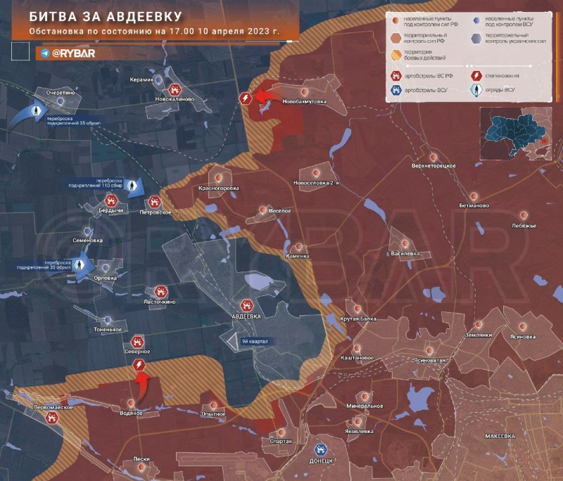 Битва за Авдеевку. Обстановка на вечер 10 апреля 2023 года