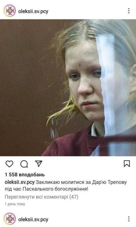 «Призываю молиться за мученицу Дарья Трепову, которая приняла мучения за свой подвиг в борьбе со злом», - заявляет раскольник Алексий из ПЦУ