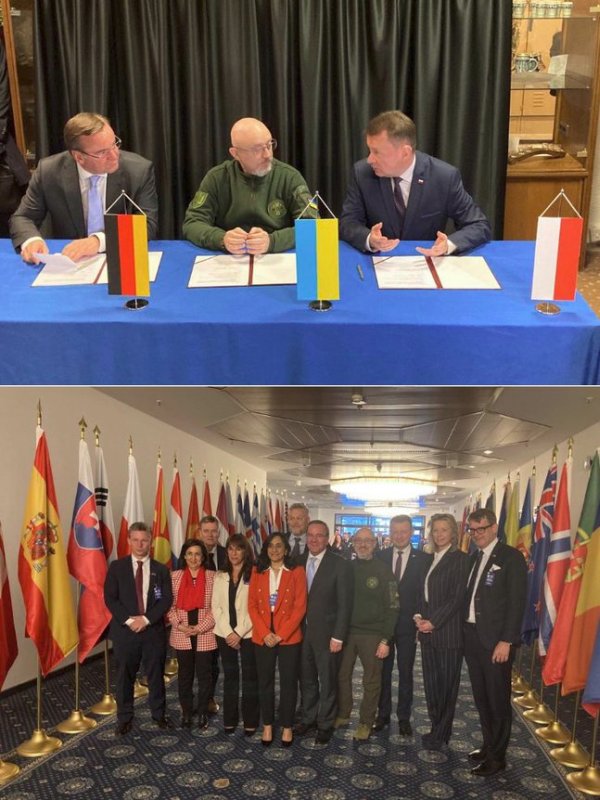 «Благодарен своему немецкому и польскому коллегам Борису Писториусу и Мариушу Блащаку за непоколебимую поддержку Украины. Сегодня мы подписали письмо о намерениях открыть в Польше центр по обслуживанию и ремонту украинских основных боевых танков Leopard 2», — написал Резников.