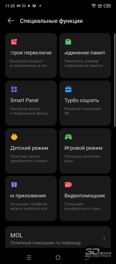 TECNO SPARK 10 Pro работает на базе свеженького Android 13 с оболочкой HiOS 12.6. С этой оболочкой мы имели дело еще на TECNO POVA 4 Pro, под тринадцатого «робота» выпускать принципиальное обновление своей системы в TECNO не стали. Основные ее черты: очень характерный дизайн с акцентом на больших папках и огромное число предустановленных приложений. При этом взаимодействовать со смартфоном достаточно приятно, интерфейс не раздражает, а русификация уже пришла в норму. Работает система стабильно и относительно быстро – со скидкой на класс гаджета.
