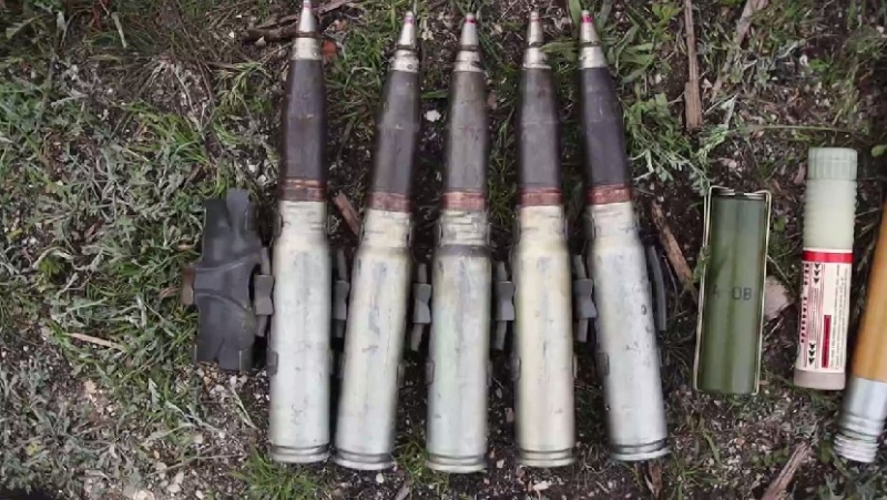 Также обнаружен схрон на окраине пгт. Чаплинка Херсонской области. Из тайника извлекли 96 головных контактных взрывателя, 11 патронов калибра 5,45 мм и один бронебойно-зажигательный калибра 30 мм, два артиллерийских снаряда калибра 152 мм и минометную мину калибра 120 мм. Все опасные находки были уничтожены.