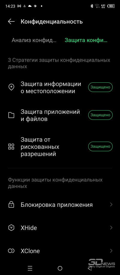 Сканер отпечатков здесь размещен в клавише питания. Она не просто отличается по текстуре от клавиши регулировки громкости, а еще и утоплена в специальном углублении — не перепутаешь на ощупь никак. Но не хватает тактильного отклика при срабатывании — вибрирует клавиша почему-то только при неудачной реакции сенсора. Сам по себе емкостный сенсор нормальный — небольшая площадь поверхности снижает процент успешных срабатываний, но не критически. Наряду со сканером отпечатков также имеется система идентификации лица при помощи фронтальной камеры.