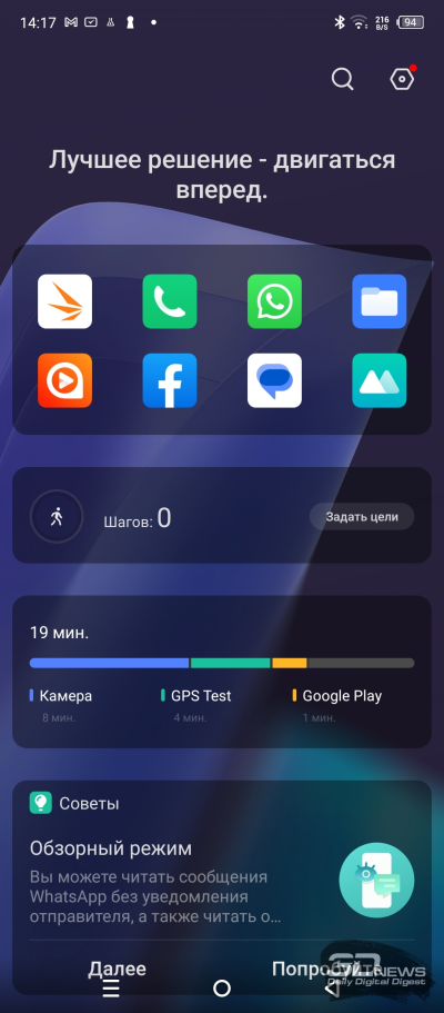 Экран получил повышенную частоту обновления — 90 Гц. Можно много говорить о том, насколько различаются частоты 120 и 90 Гц визуально, но скроллинг что с той, что с другой становится плавнее, чем при 60 Гц, так что работать со смартфоном в любом случае приятнее. В настройках можно предоставить устройству самому решать, когда поднимать частоту, а когда оставлять стандартной (60 Гц), а можно установить ее принудительно. Впрочем, принудительно только до определенной степени: в играх частота обновления в любом случае ограничивается 60 герцами.