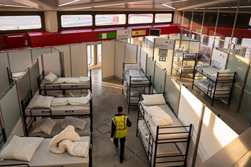 Выселенных украинских беженцев разместили в помещении бывшего аэропорта Тегель, в терминалах и палатках установили кровати. В общей сложности центр рассчитан на прием 4 800 людей.