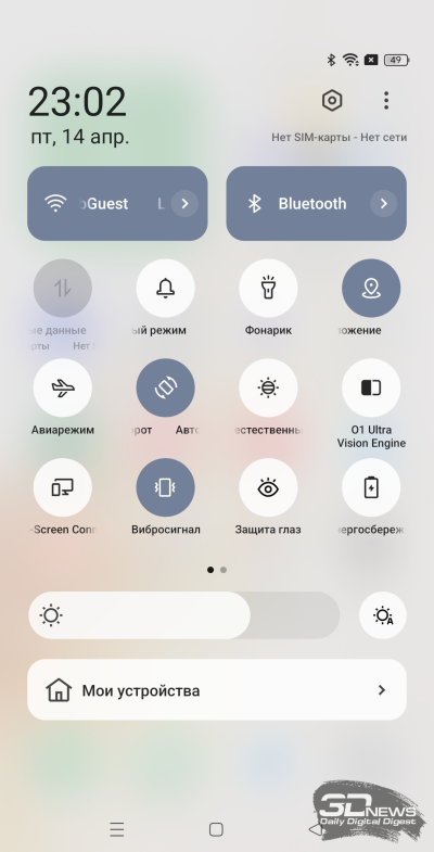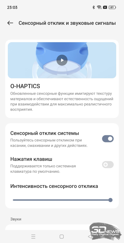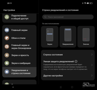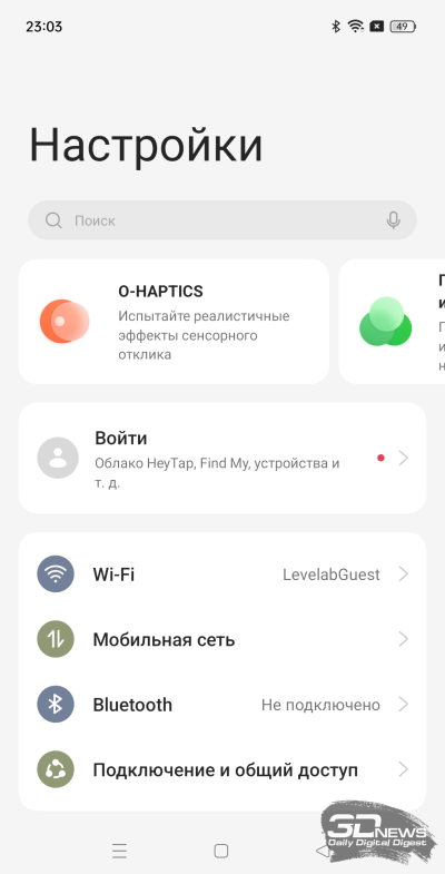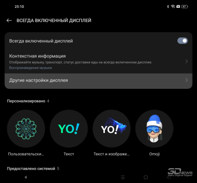 В настройках дисплея можно изменить размер шрифтов, настроить режим «защиты глаз» (фильтр синего, делающий картинку более теплой и тем самым понижающий нагрузку на зрение) и активировать адаптивный спящий режим (смартфон не будет отключать экран, когда вы смотрите на него). Есть уйма настроек отображения информации на заблокированном экране и типичный для смартфонов OPPO набор программного улучшения изображения: можно повысить резкость, расширить цветовую гамму для SDR-видео, увеличить яркость при воспроизведении HDR-контента (здесь-то, возможно, экран и выйдет на проектную мощность по пиковой яркости).