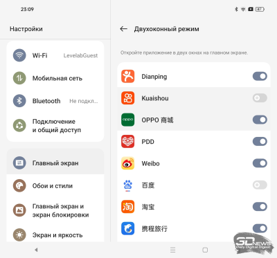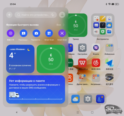 Из опций использования именно складного экрана может пригодиться только особый вариант приложения камеры: окно «видоискателя» переезжает на верхнюю часть, а внизу остаются органы управления съемкой, что помогает, к примеру, вести трансляцию или снимать фото, положив полусогнутый в «ноутбучном» формате смартфон на стол. Остальные опции касаются только китайских приложений — не просто не русифицированных, а вообще не рассчитанных на использование за пределами Поднебесной: для них нет глобальной версии, только китайская. Работает оболочка в целом быстро и не глючит — в том числе и при постоянном переключении между большим и малым экраном.