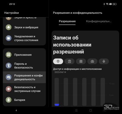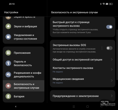 Клавиша питания со сканером отпечатков слегка утоплена в корпус, нащупать ее не составляет труда. Сенсор емкостный, то есть чуткий, но полностью раскрыть это качество ему мешает размер — из-за небольшой площади покрытия срабатывает он не всегда. Смартфон можно разблокировать при помощи сканера как в закрытом, так и в раскрытом виде. У меня случаев разблокировки смартфона при нечаянном касании сканера в кармане не было, но можно дополнительно себя обезопасить, выбрав один из двух вариантов срабатывания: при помощи касания клавиши питания или ее полноценного нажатия. Имеется и дублирующий способ разблокировки при помощи идентификации лица пользователя, причем для этого подойдет и внешняя, и внутренняя камера.