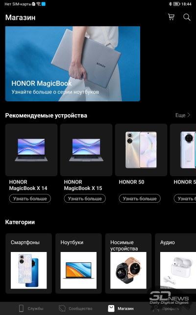 HONOR Pad X8 работает под управлением операционной системы Android 12 с оболочкой MagicUI 6.1. Мы уже рассказывали об этой оболочке в обзоре HONOR Pad 8. Из важных моментов планшетной версии этой оболочки отметим выделенную панель с часто используемыми/закрепленными приложениями, несколько режимов для выведения двух или более окон на экран одновременно (Smart Multi-Window, App Extender), сервис быстрой передачи данных на другие устройства HONOR под названием HONOR Share, а также возможность использования планшета в качестве дополнительного экрана для других устройств HONOR. Отмечу, что, несмотря на не самую мощную аппаратную платформу, система работает на HONOR Pad X8 достаточно шустро. Но некоторые подтормаживания и неспешная подгрузка информации в определенных ситуациях случаются – полностью «гладкой» работу HONOR Pad X8 я назвать не могу.