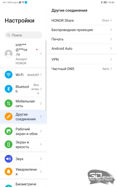 К сожалению, тенденция отказа от аналогового аудиоразъема докатилась и до недорогих планшетов. Хотя именно здесь это особенно критично. По нескольким причинам: и целевая аудитория подобных устройств далеко не вся перешла на беспроводные наушники, и сам по себе формат планшета предполагает довольно долгие сессии потребления контента – например, в самолете или долгих поездках на заднем сиденье автомобиля, за время которых беспроводные наушники успеют разрядиться. Но увы – этот разъем уже почти официально можно признавать мертвым для мобильных устройств. Беспроводная передача данных осуществляется при помощи модуля Bluetooth v5.2, но, к примеру, профили aptX не поддерживаются. Зато есть LDAC. Динамики в HONOR Pad X8 стереофонические – расположены корректно, достаточно громкие и с неплохим качеством звука.