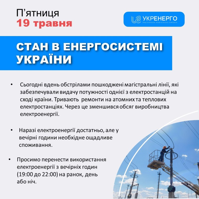 Вчера, 18 мая, министерство энергетики Украины сообщило, что из-за повреждения энергетической инфраструктуры более 20 населенных пунктов в ряде областей страны остались без света. В Минэнерго уточнили, что в результате ракетного удара в Хмельницкой области отключились воздушные линии электропередачи. В Николаевской области обесточены три населенных пункта, также без света остались некоторые жители Сумской, Харьковской и Черниговской областей.