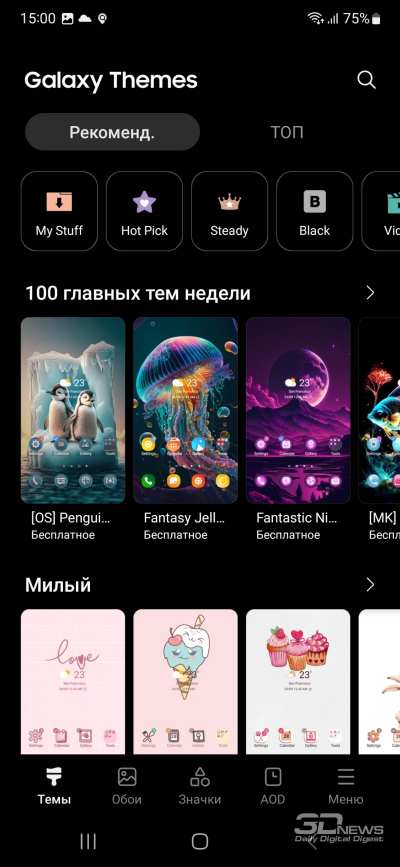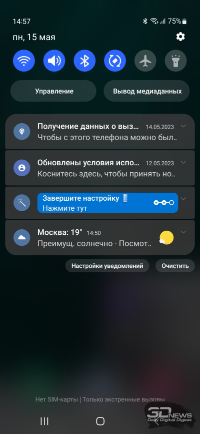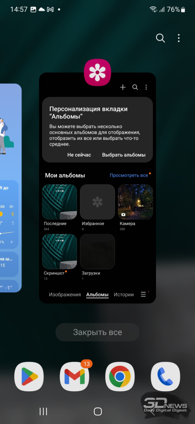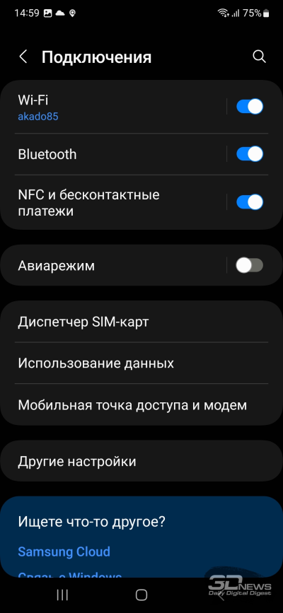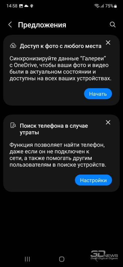 На Samsung Galaxy A54 установлена операционная система Android 13 с оболочкой One UI 5.1. Про нее я рассказывал в обзоре Samsung Galaxy S23 Ultra: вычитаем возможности для работы с пером и быстрейшую память — и получаем в остальном похожий опыт. Самое главное – система работает быстро и гладко, в отличие от того, что мы видели на Galaxy A53. За три недели тестирования ничего не лагало, перезагрузки не требовались, да и в целом опыт приятный: нормальный вибромотор, в том числе подтверждающий срабатывание датчика отпечатков; приложения открываются шустро; 120-герцевый экран добавляет плавности. Сама по себе оболочка, как всегда, отлично выглядит и весьма функциональна. На мой вкус, Samsung перебирает с количеством предустановленного софта, а некоторые настройки располагаются в неочевидных местах, но в целом это один из лучших интерфейсов для смартфонов на сегодняшний день.