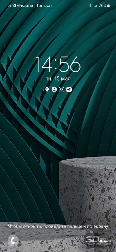 Сканер отпечатков пальцев располагается в поверхности экрана – это оптический сенсор, который нечувствителен к прикосновению влажных пальцев, но на сухие реагирует прекрасно. Претензий к его работе у меня не возникло, все достаточно быстро и с высоким процентом срабатывания. Расположен сенсор довольно низко, но смартфон не слишком крупный, так что при перекладывании его в ладони опасных ситуаций, на мой взгляд, не возникает. Имеется возможность использовать и альтернативный метод биометрической аутентификации при помощи камеры – куда менее надежный, предупреждаем в очередной раз.