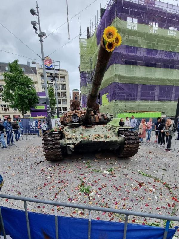 Украинцы установили перед посольством РФ в Амстердаме подбитый российский танк Т-72 из зоны проведения спецоперации. Однако вместо ожидаемого эффекта глумления, голландцы забросали его цветами.