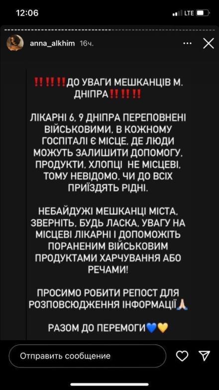 Блогер, которая записала сторис для своего Instagram (соцсеть запрещена в России) о переполненной военными больнице в Днепропетровске, обвинение в «наводке» отвергла.