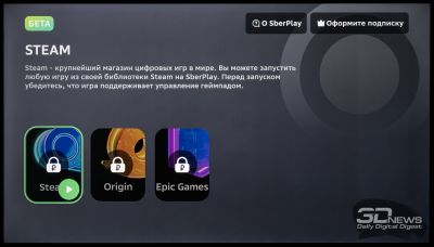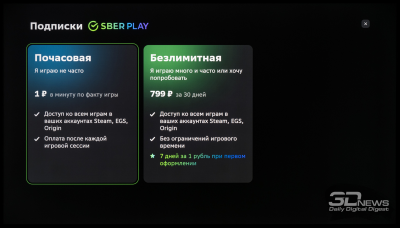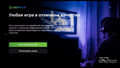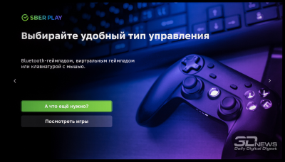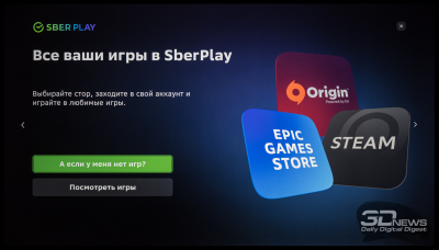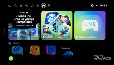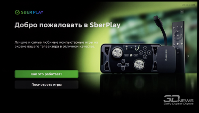 Любителям поиграть будет полезно познакомиться с облачным геймингом SberPlay, предлагающим доступ к вашим играм из таких сервисов, как Steam, Origin, Epic Games. SberPlay является прямой и куда более доступной альтернативой западным аналогам: всего 799 рублей за безграничный доступ к платформе на протяжении месяца либо 1 рубль за 1 минуту игрового времени. Игры запускаются на мощных ПК «Сбера», а изображение в реальном времени (с небольшой задержкой) выводится на экран телевизора. Вам достаточно просто подключить клавиатуру, мышку или геймпад по Bluetooth, произвести вход в подходящий сервис с нужной игрой из вашей библиотеки, быть уверенным в стабильности и скорости интернет-соединения — и наслаждаться игровым процессом.