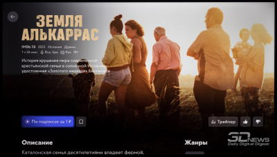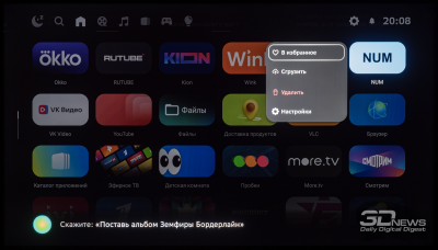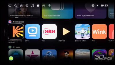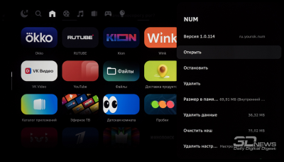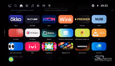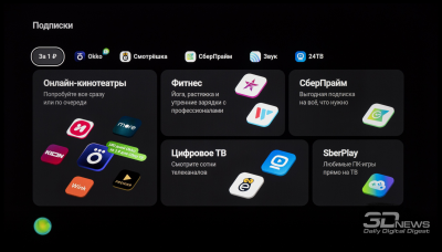 По умолчанию в системе «Салют ТВ» предустановлено огромное количество известных в России сервисов, среди которых: Wink, «Кинопоиск», Rutube, YouTube, KION, Start, ИВИ, Premier, «VK Видео», Okko. Доступ к последнему на шесть месяцев можно получить почти даром – за 1 рубль, а в дальнейшем (если сервис вам не понравится) отказаться от продления подписки.