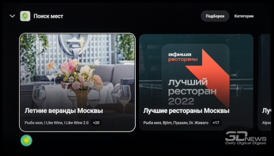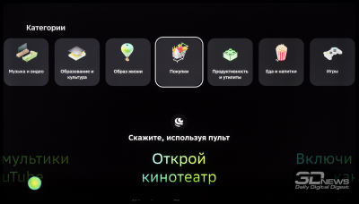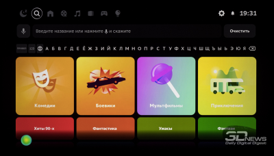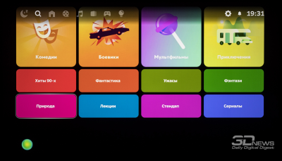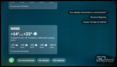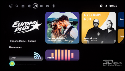 Система «Салют ТВ» предлагает различные промоподписки на полезные сервисы из экосистемы «Сбера», обеспечивает свободный доступ к радиостанциям, подкастам, новостям и информации о пробках на дорогах и погоде. Также «Салют» поддерживает сквозной поиск по онлайн-кинотеатрам и прочим сервисам. Просто укажите, что вас интересует (голосом или текстом через встроенную клавиатуру), — и вы получите всю необходимую информацию с возможностью быстрого перехода к найденному источнику.