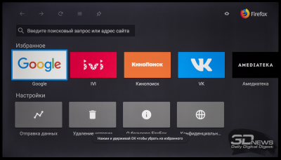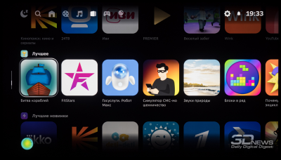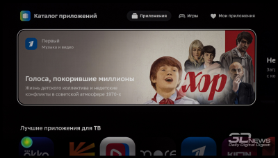 Телевизор поддерживает бесплатный доступ к более чем 100 телеканалам (купили телевизор, подключили к Wi-Fi или проводной сети — и сразу приступили к просмотру), имеет быстрый и удобный встроенный браузер на базе Firefox, поддерживает установку дополнительных приложений и игр из собственного «магазина» от Сбера, а также возможность установки сторонних приложений формата .apk (через загрузку в свой личный кабинет Sber ID либо с помощью USB-накопителя), что открывает практически безграничные возможности для потребления контента. Продвинутые владельцы ТВ-приставок знают, о чём идёт речь!