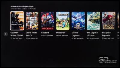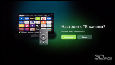 Основной блок настройки системы показывает, что герой обзора является прямым последователем решений на базе Android TV – всё очень знакомо и понятно. Структура типичная, с небольшими отхождениями от «оригинала». Основных разделов всего пять, а два дополнительных отданы под быстрый вход в аккаунты (пока, правда, тут только «Яндекс») и регулировку времени до выключения устройства или вывода экранной заставки.