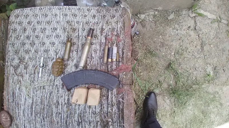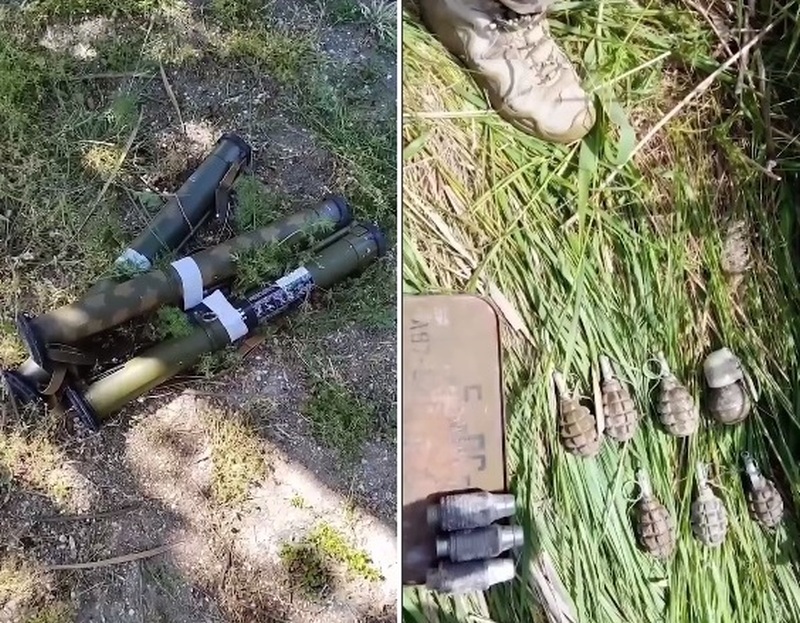 В целом в тайнике было 2,5 тысячи патронов разных калибров, 11 ручных гранат Ф-1, 21 гранатометный выстрел и три реактивных пехотных огнемета «Шмель».