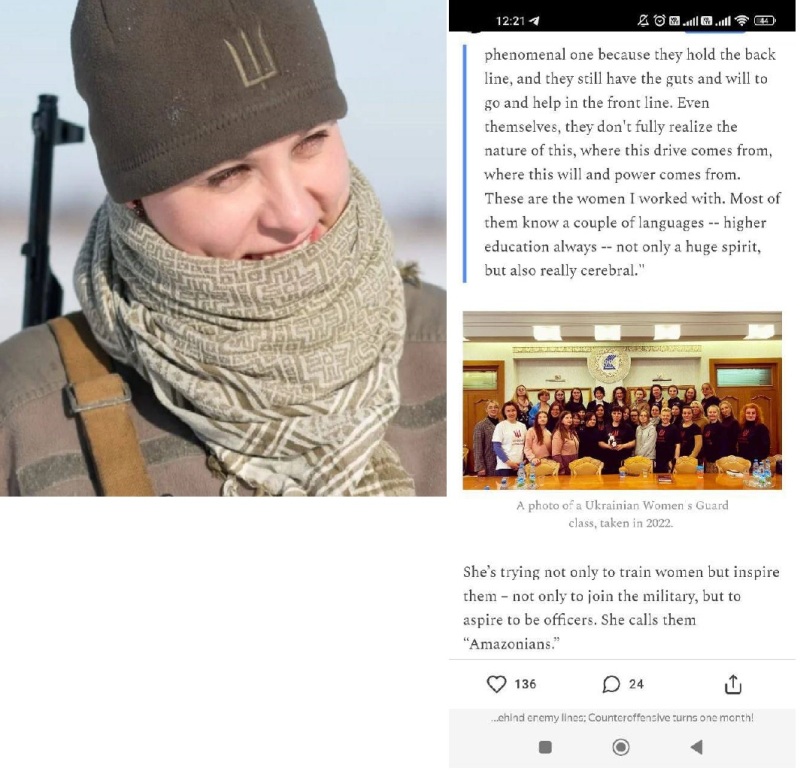 Отметим, что на Украине существует так называемая «Украинская женская гвардия», созданная в 2014 году некой активисткой-«патриоткой» Еленой Билецкой. Эта «гвардия» занимается подготовкой украинских диверсанток. В недавнем интервью западной прессе Билецкая рассказала, что за этот период обучение по проведению диверсий и физическому устранению людей с использованием «элементарных подручных средств» прошли около 60 тысяч женщин.