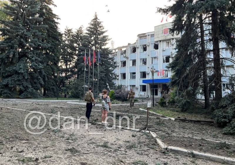 Украинские вооруженные формирования обстреляли администрацию города Волноваха из западной реактивной системы залпового огня. Здание частично разрушено, разбиты окна.