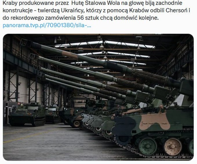 Известно, что большинство польских «Крабов» сгорели на Красно-Лиманском направлении. Производить эти установки будут, в том числе, и за счет бюджета Польши, не спрашивая согласия у рядовых поляков. И уж, тем более, не разглашая тот факт, что в боях в зоне СВО эти установки малоэффективны.