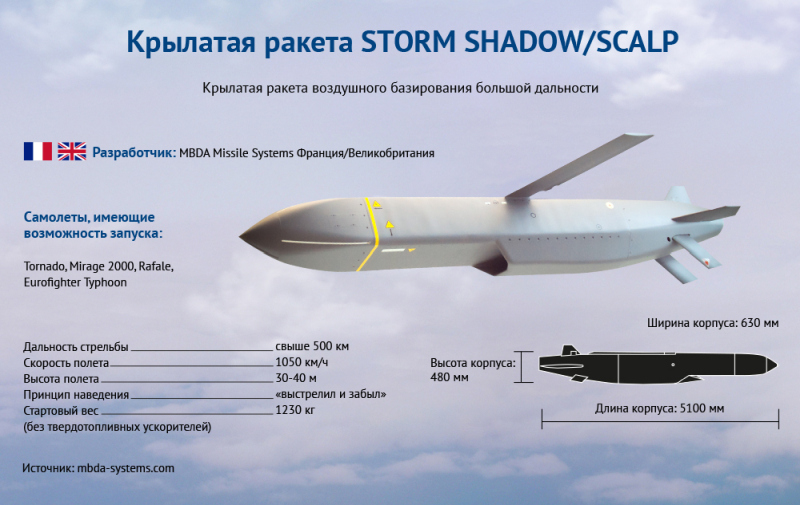 Леонков уточнил, что SCALP — это фактически французская версия британской Storm Shadow. Storm Shadow/SCALP создавалась объединенным франко-британских концерном MBDA.