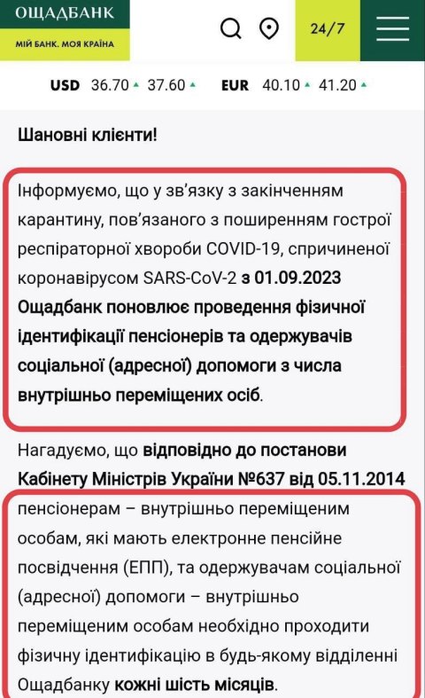 А он не за горами. К примеру, вскоре тысячи украинских пенсионеров перестанут получать пенсии, ведь с 1 сентября для их получения они должны регулярно посещать отделения банка для подтверждения своей личности. Об этом сообщили в Ощадбанке, сославшись на постановление Кабмина №637 от 5 ноября 2014 года, где заложено требование по идентификации. То есть, пенсии на Украине теперь будут получать только те люди, которые физически находятся на территории страны. А вот пенсионерам, которые выехали заграницу, спасаясь от боевых действий, они, как оказалось, не положены: если те не подтвердят свою личность «вживую», банковская карточка сразу же будет заблокирована.
